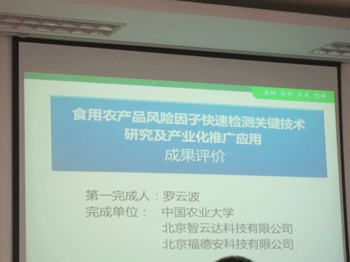 此次成果完成單位有:中國(guó)農(nóng)業(yè)大學(xué)、北京智云達(dá)科技有限公司和北京福德安科技有限公司。該成果主要針對(duì)我國(guó)食用農(nóng)產(chǎn)品中的農(nóng)藥殘留超標(biāo)、重金屬殘留、致病微生物侵染、食用油摻偽、添加非法添加物等主要食品安全隱患,開(kāi)發(fā)出相應(yīng)的快速食品檢測(cè)技術(shù)和產(chǎn)品。