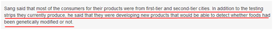 “在過去的一年里,食品安全快速檢測產品已經被越來越多的人使用”,??偨榻B說,“大多數人因為無法支付第三方檢測平臺和專業實驗室的高額費用,轉而使用此類方法。目前使用這些快檢產品的消費者大多來自一線和二線城市,我們一直不斷研發新產品,目前正在研發能夠檢測轉基因的產品?!?