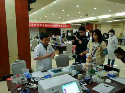 本次驗證活動,包括多位食藥監管理人員、媒體朋友,20余家快速檢測企業及技術人員參加,北京智云達科技股份有限公司也在本次投標的現場驗證企業之中。活動的開展通過現場檢測、現場考核、比對實驗等方式,向下屬食藥監部門推薦檢測效果好、檢測時間短、檢測方法便攜的投標企業。