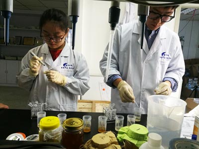 北京智云達技術(shù)工程師楊老師和王老師首先對不同樣品通過使用北京智云達自主研發(fā)生產(chǎn)的快速檢測產(chǎn)品:蜂蜜中果糖和葡萄糖速測盒,蜂蜜蔗糖半定量速測盒。