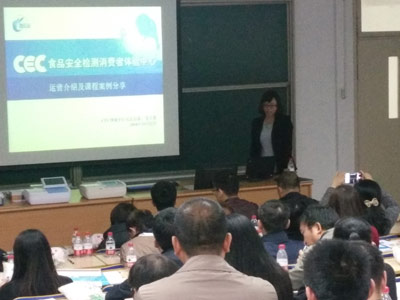 北京智云達網絡部經理張立葵現場分享CEC食品安全檢測消費者體驗中心的運營與課程案例,在互聯網+的時代背景下,北京智云達在運營上,線上與線下雙管齊下,共同進步。