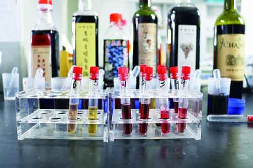 北京智云達技術工程師楊老師和王老師通過使用北京智云達自主研發生產的快速檢測產品:紅葡萄酒摻偽速測盒,對樣品溶液進行檢測。
