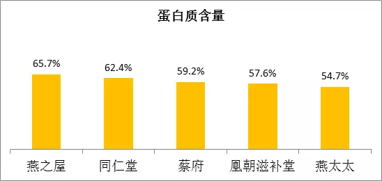 檢測結(jié)果顯示,五品牌燕窩蛋白質(zhì)含量均在50%以上。