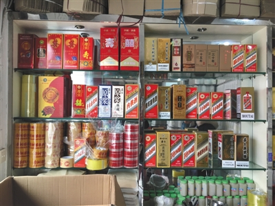 假茅臺酒的包裝在翁永成店里的玻璃貨架上并沒有擺出,店內(nèi)銷售員劉姝透露,假茅臺酒的包裝需要現(xiàn)場調(diào)貨,不會放在店里銷售。