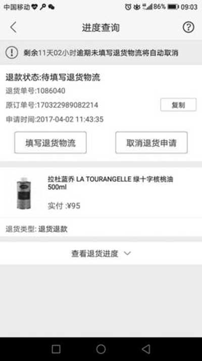 隨后,王女士也表示,網上公布的說明文件除中文說明外,其余證明資料均字跡不清,希望蜜芽方面能提供清晰的說明原件。4月2日,蜜芽告知王女士,由于一些原因,無法提供原件。同時蜜芽客服也表示,作為最終的處理結果,王女士除了能無條件退貨退款外,蜜芽網還將贈送王女士一張50元的優惠券。王女士在電話中表示,沒有一個明確的解釋,自己是不會認可蜜芽的處理結果的。4月2日下午,王女士的蜜芽賬戶中突然多了50元的優惠券,并且自己購買核桃油的訂單狀態自動變成了“退貨退款”。