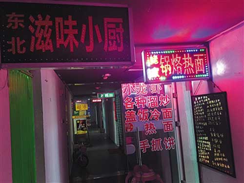 3號樓原有11家餐館,也只有一家營業。店鋪大門緊閉,敲門后,老板謹慎地探出頭看了看,才開門讓食客進店,隨即又關上店門。