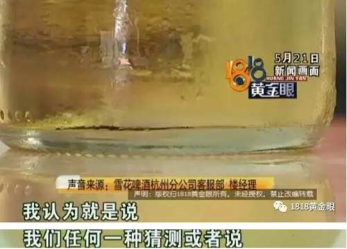 華潤雪花啤酒浙江公司杭州分公司客服部 樓經理:“這個我是客服部,主要是處理投訴的,我不是專業的,不能發表評價。”