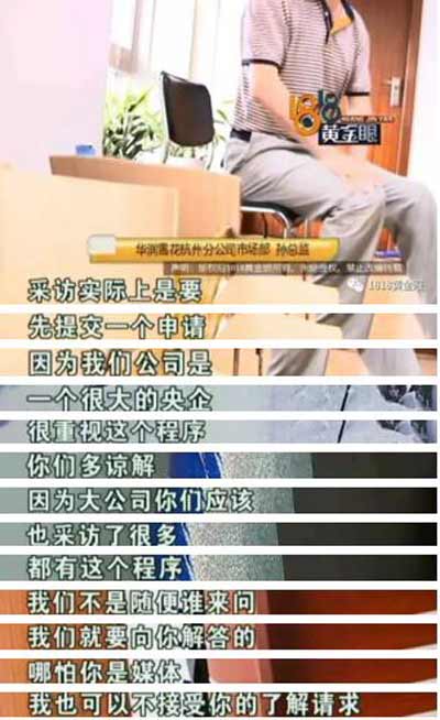 華潤雪花啤酒浙江公司杭州分公司市場部 孫總監:“(這個大概什么時候會有一個回復?)我們的進程大概是多少時間能有一個回復,應該是一天(是一天之后就可以確定采訪時間還是?)是確定接不接受采訪,我們不一定接受采訪。”