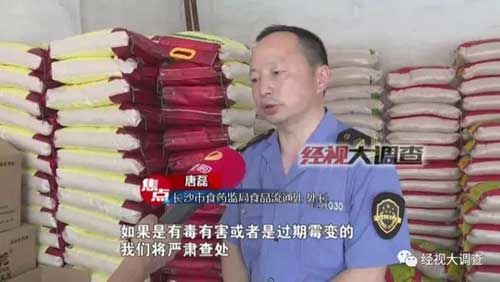 執(zhí)法人員發(fā)現(xiàn),在這些過期問題大米周邊都存在著一種粉末狀的藥物。趕來的老板這樣解釋:“就是對(duì)這些米質(zhì)量要求不那么嚴(yán)格的了,我會(huì)對(duì)他說這個(gè)米是怎么樣的,這些米的質(zhì)量肯定不如正常的。”