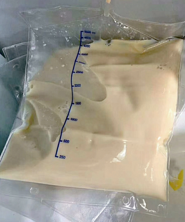 當(dāng)晚,2000毫升的血漿被送到ICU。對高脂血癥引起的急性胰腺炎,最有效的治療方法就是將患者血液里的油脂給置換出來。正常的血漿顏色為淡黃色,但從小萍體內(nèi)置換出來的2000毫升血漿卻是奶白色,就像凍住的豬油一樣。“這樣的血在體內(nèi),就會堵住血管。”醫(yī)生說。