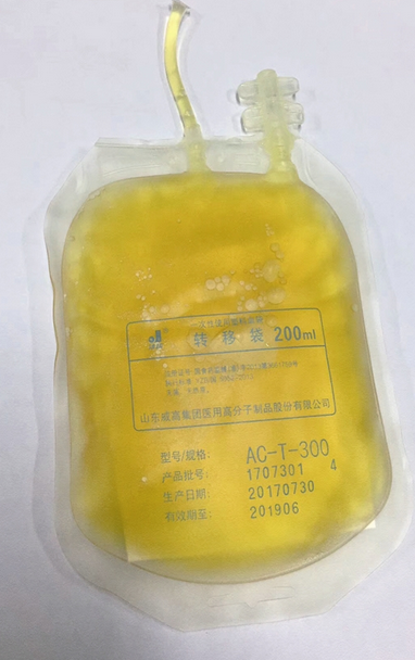 小萍體內(nèi)置換出的血漿像豬油一樣 院方供圖