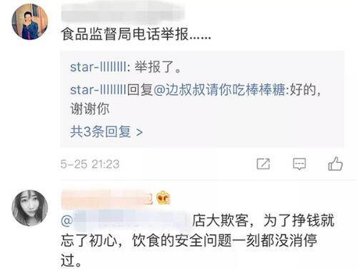 在小南通過微博把5只“小強”的尸體圖片公布后,網友們也坐不住了,有的網友支持維權,有的網友也質疑是“有目的”抹黑嘉和一品。