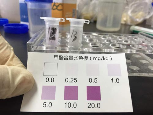 北京智云達技術工程師楊老師和王老師首先將樣品粉碎,通過使用北京智云達自主研發生產的快速檢測產品:亞硝酸鹽速測管,對樣品溶液進行檢測。