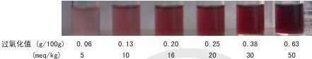 利用食用油氧化所生成的過氧化物與檢測(cè)試劑發(fā)生顯色反應(yīng),食用油過氧化值越高,顏色越深。