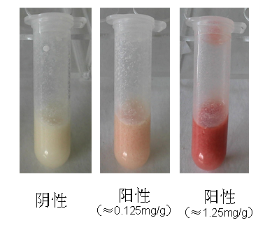 若反應溶液變紅,可判定樣品中含有磺胺類物質,為陽性(+);否則判為陰性(-)。