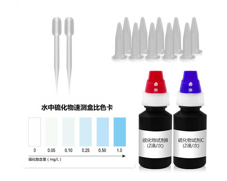 水中硫化物與檢測試劑反應(yīng)生成藍色化合物,含量越高藍色越深。