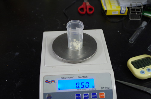 將樣品粉碎,稱取0.5克粉碎的樣品。